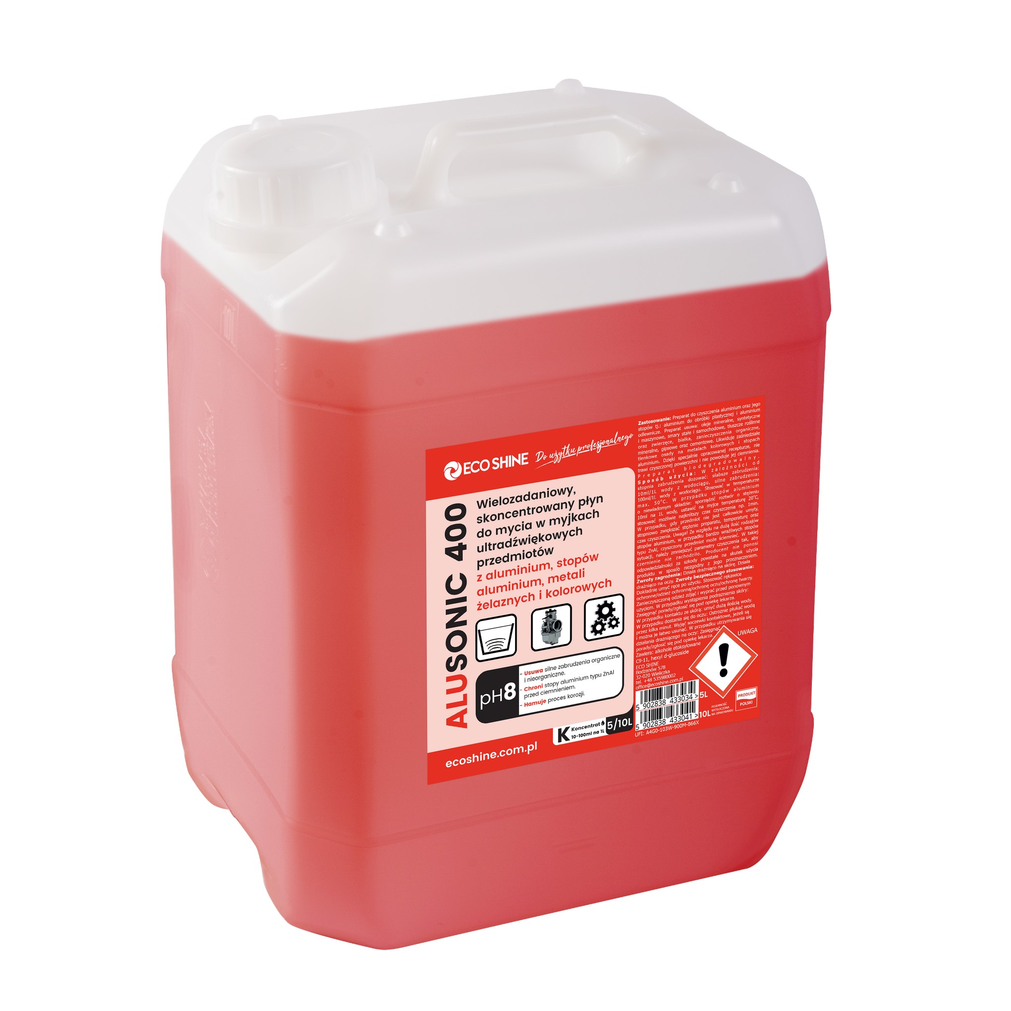 ECO SHINE ALUSONIC 400 – Wielozadaniowy skoncentrowany płyn do myjek ultradźwiękowych 5L