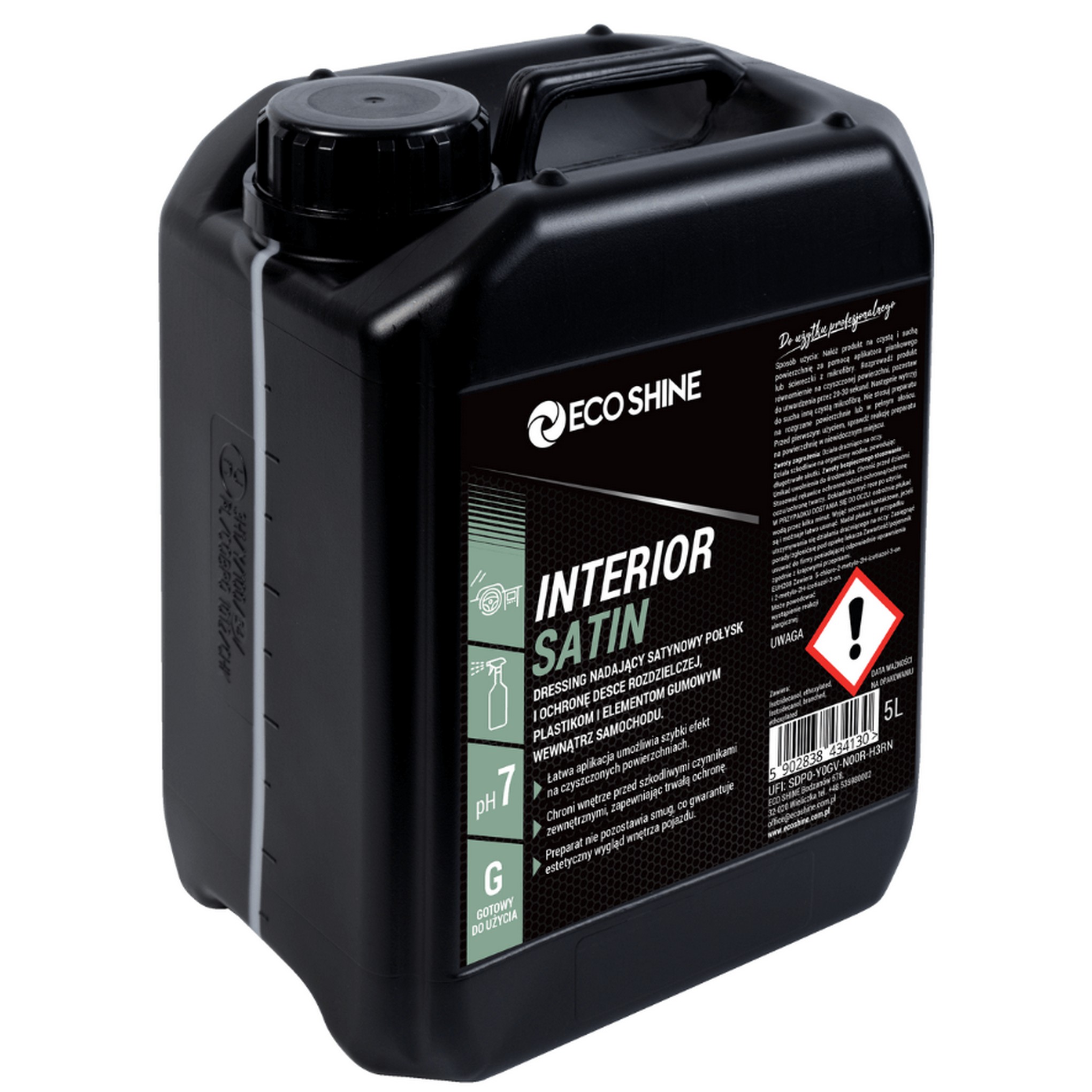 ECO SHINE INTERIOR SATIN – Dressing satynowy połysk do deski rozdzielczej i elementów gumowych 5 L