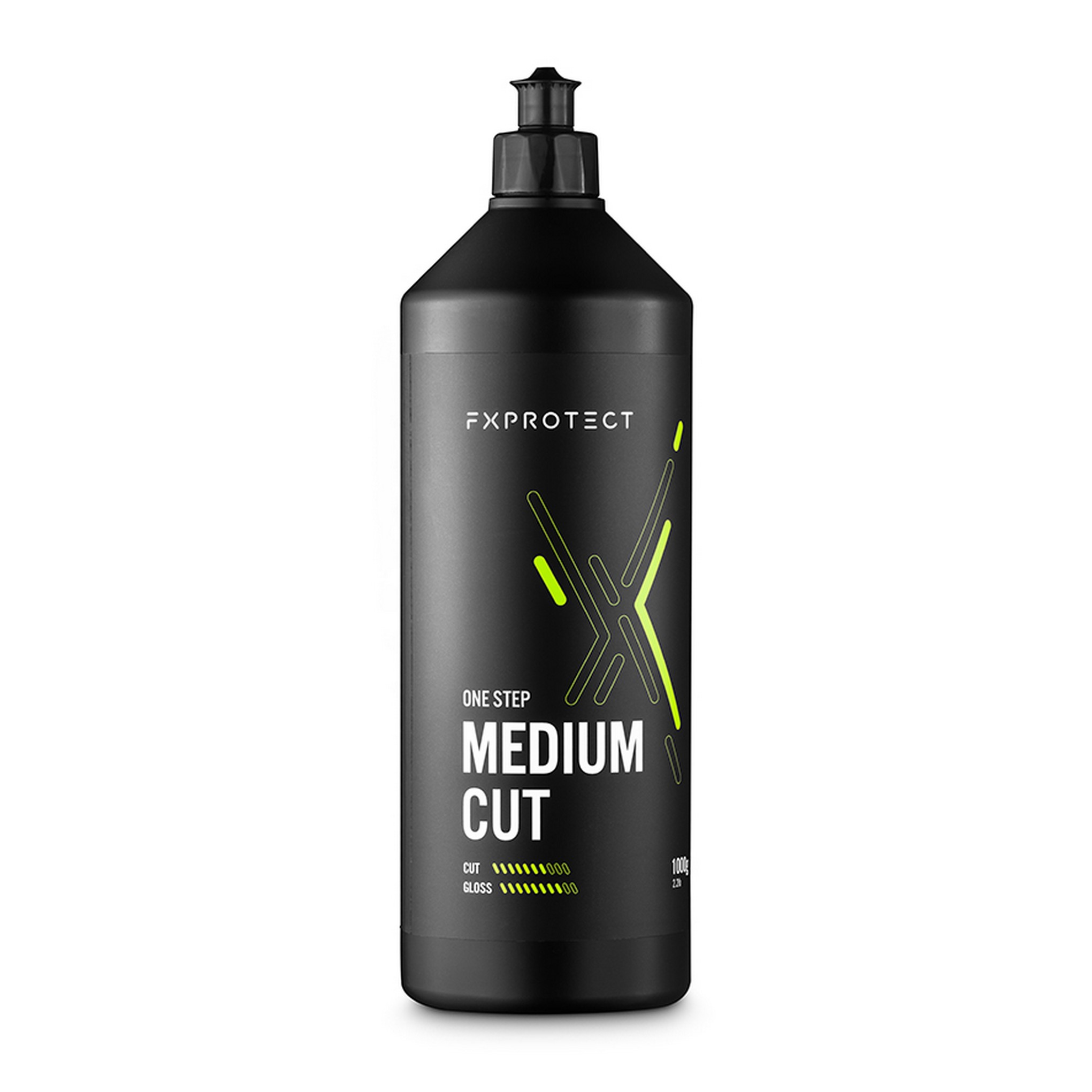 Średnio ścierna pasta polerska MEDIUM CUT / ONE STEP przeznaczona do usuwania umiarkowanych zarysowań z powierzchni lakierniczej. Pozostawia wysoki poziom połysku w zastosowaniu ONE STEP. Usuwa zmatowienia P2000. Wysokowydajna oraz niskopyląca dzięki czemu skraca czas pracy na powierzchni. Stworzona na bazie wody, nie zawiera rozpuszczalników oraz wypełniaczy. Idealnie przygotowuje powierzchnię pod zastosowanie pasty FINE CUT.