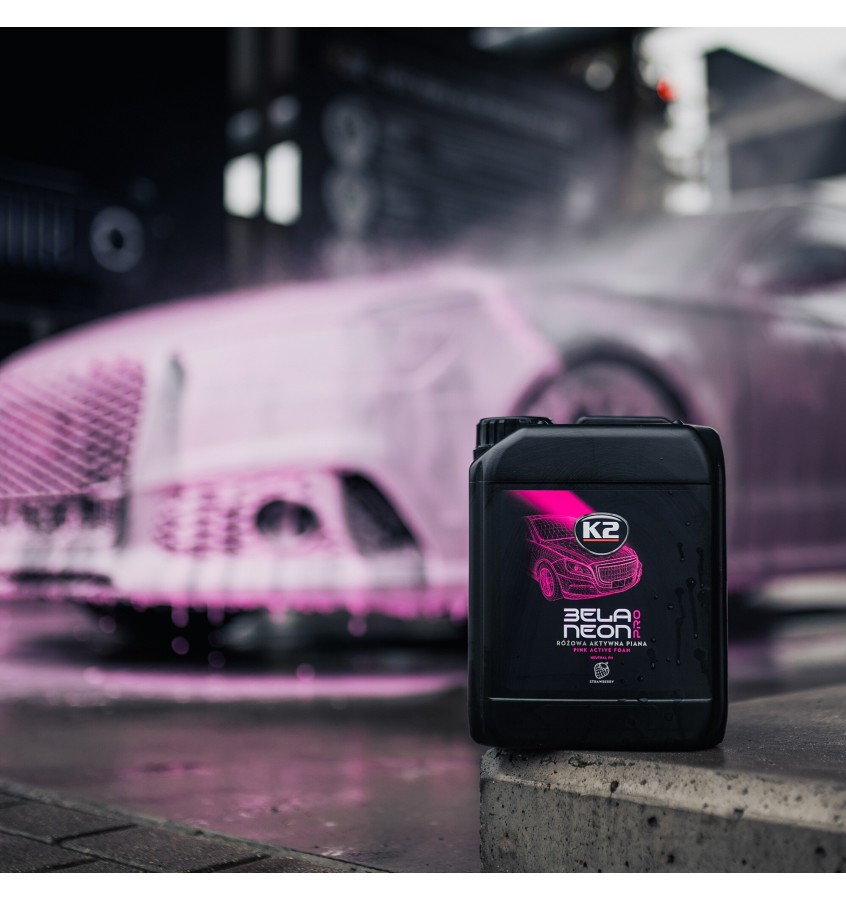 Przygotuj się na epickie doświadczenie mycia samochodu z K2 Bela NEON Pro! Ta profesjonalna, wysoce skoncentrowana aktywna piana nie tylko skutecznie oczyści Twój pojazd, ale również zamieni rutynową czynność w niesamowitą przyjemność. Intensywnie różowy kolor piany w połączeniu z genialnym zapachem świeżych truskawek sprawi, że mycie auta stanie się Twoim ulubionym zajęciem.