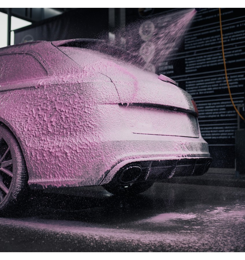 • Spektakularny kolor: Gęsta i obfita piana otula samochód, tworząc efekt „truskawkowego śniegu”, który cieszy oko i dodaje finezji każdemu myciu