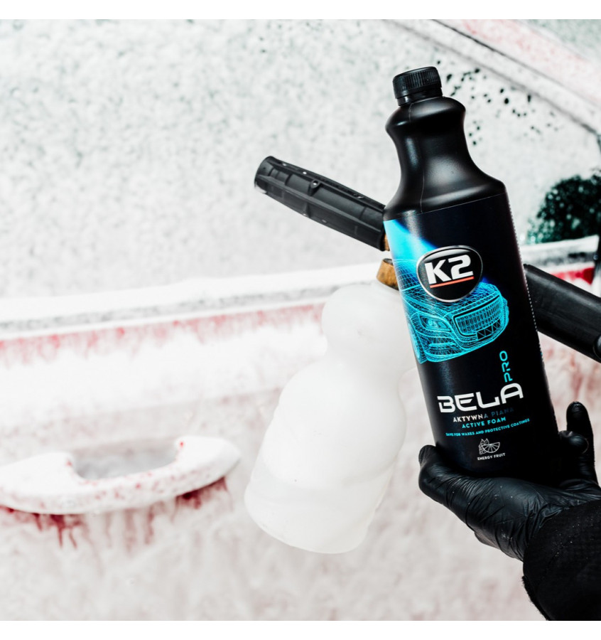 K2 BELA PRO niczym królowa śniegu pokrywa powierzchnię gęstą i puszystą białą peleryną aktywnej piany.