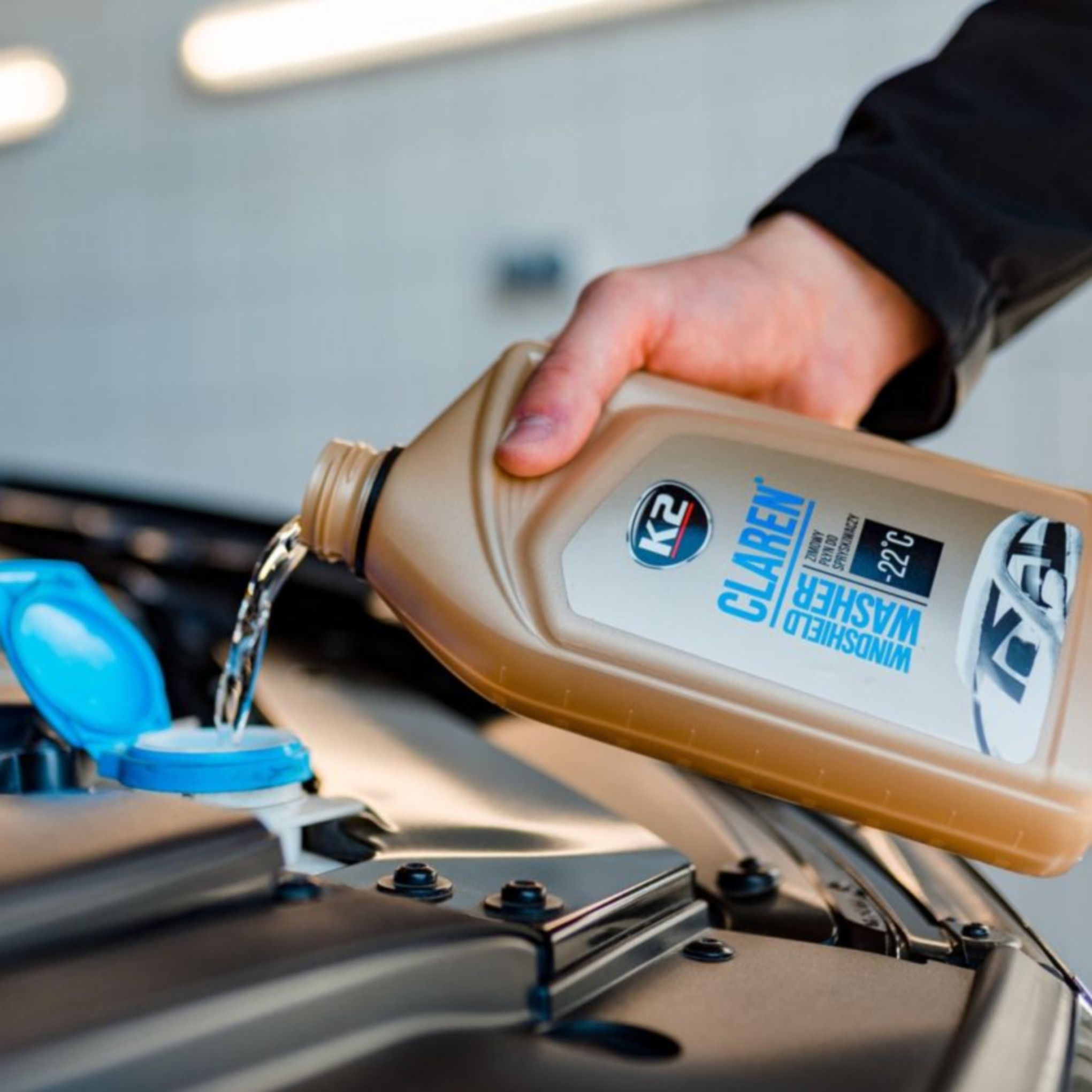 Formuła zimowego płynu do spryskiwaczy K2 Clarena została wzbogacona nanocząsteczkami, które tworzą na powierzchni szyby warstwę ochronną. Dzięki temu zostaje wygładzona, co zapobiega ponownemu osadzaniu się brudu. W czasie deszczu woda szybciej spływa z szyby, a wycieraczki wolniej się zużywają. Płyn K2 Claren jest całkowicie bezpieczny dla uszczelek i lakieru.