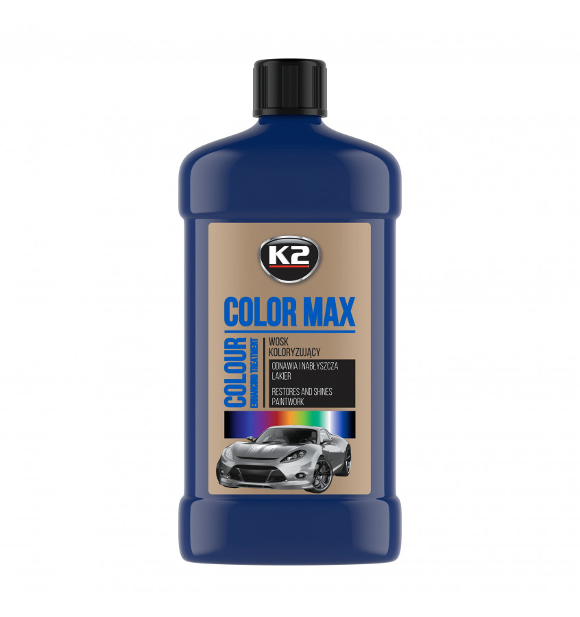 K2 Color Max – wosk koloryzujący dostępny w 9 popularnych kolorach. Nadaje się do wszystkich typów lakierów samochodowych, również metalizowanych. Doskonale ożywia kolor, a dzięki zawartości wosku Carnauba przywraca dawny połysk lakieru.