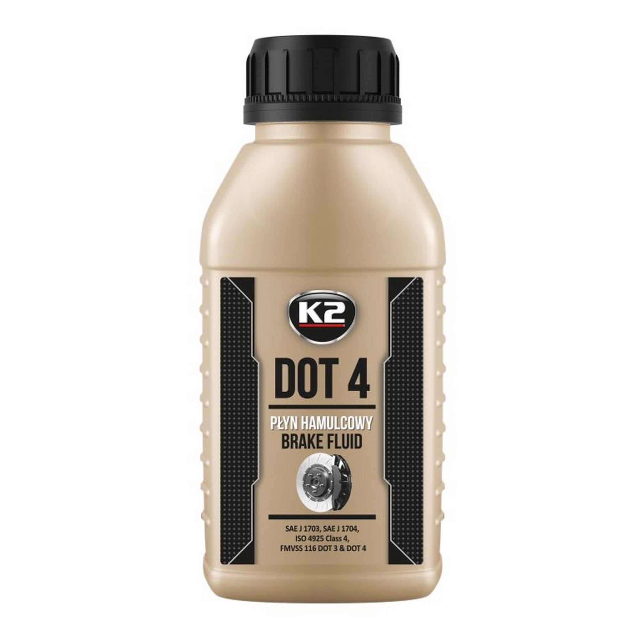 Płyn hamulcowy DOT 4 posiada doskonałe parametry reologiczne pozwalające na stosowanie w bardzo niskich temperaturach. Jest neutralny dla uszczelnień i stopów metali stosowanych w układzie hamulcowym oraz chroni go przed korozją. Płyn hamulcowy K2 DOT 4 posiada temperaturę wrzenia przekraczającą 230 st. C, dzięki czemu dłużej zachowuje on swoje właściwości. Produkt jest w pełni mieszalny z innymi płynami klasy DOT.