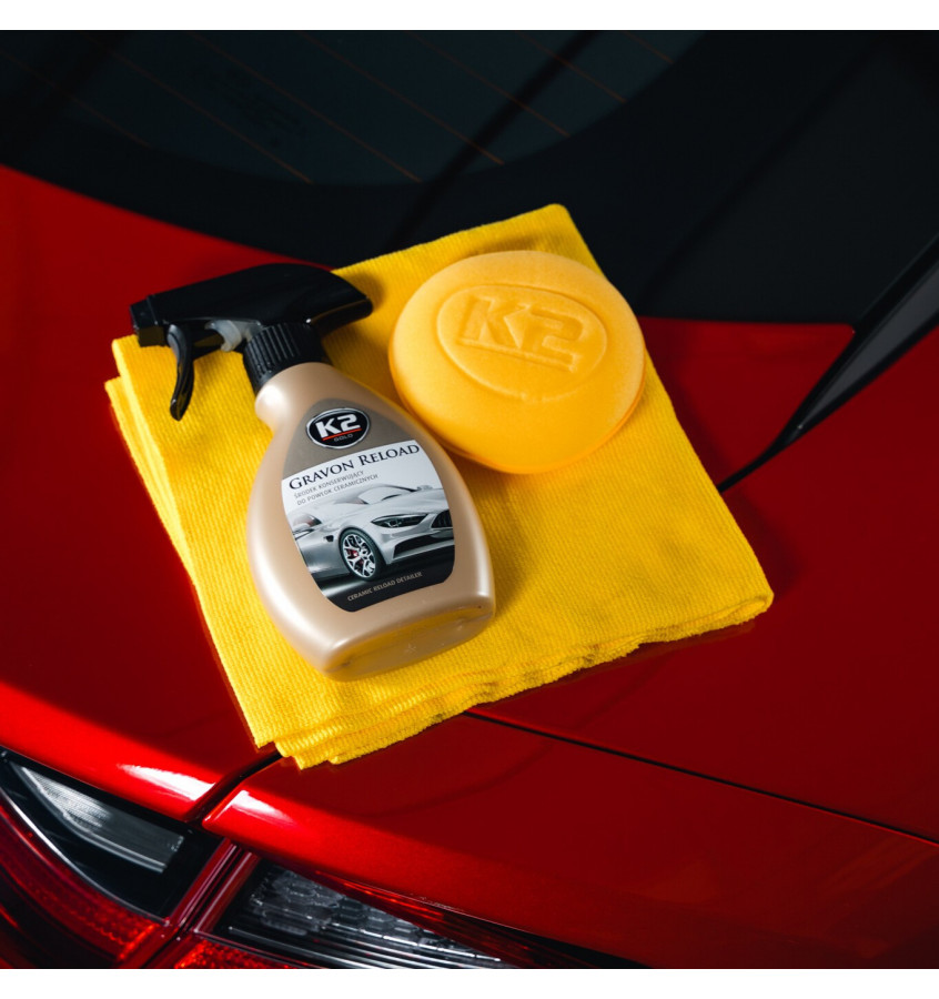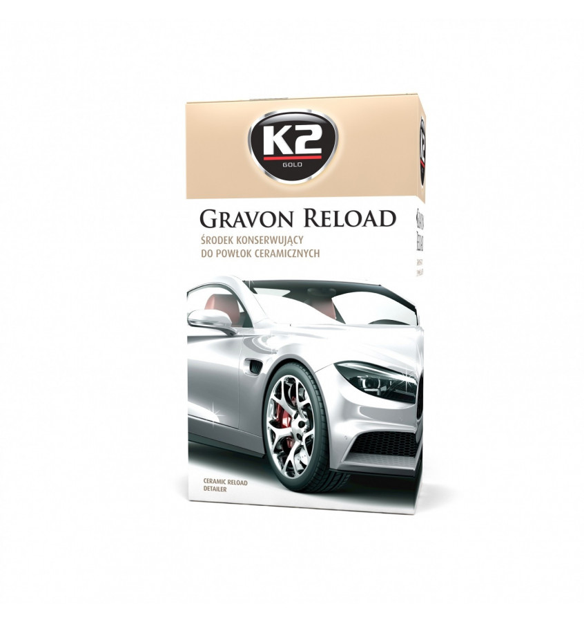 K2 GRAVON RELOAD świetnie zabezpiecza karoserię oraz można go aplikować również na takie elementy jak plastik, guma czy szkło. Jego trwałość w zależności od użytkowania może wynosić od 3 do 6 miesięcy.
