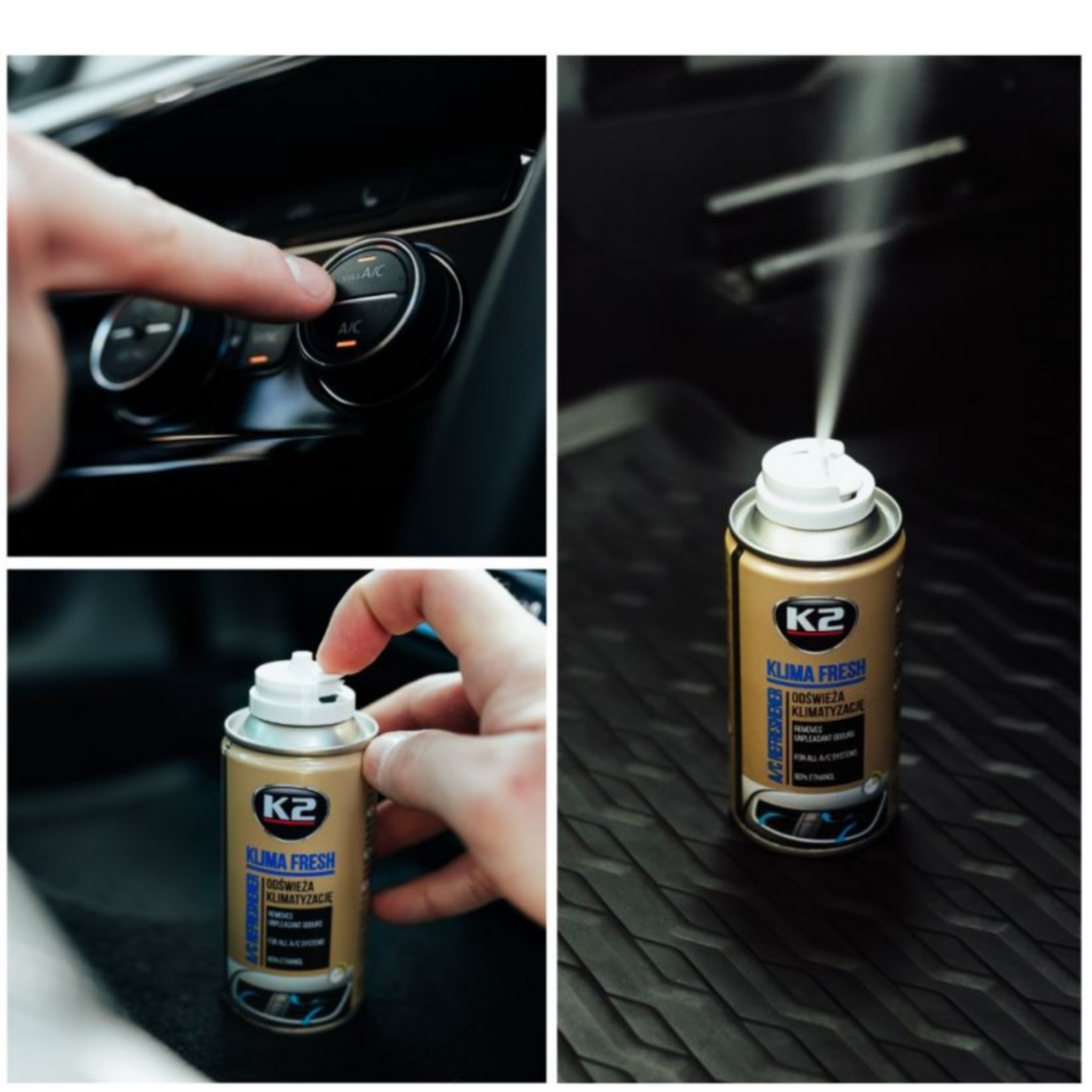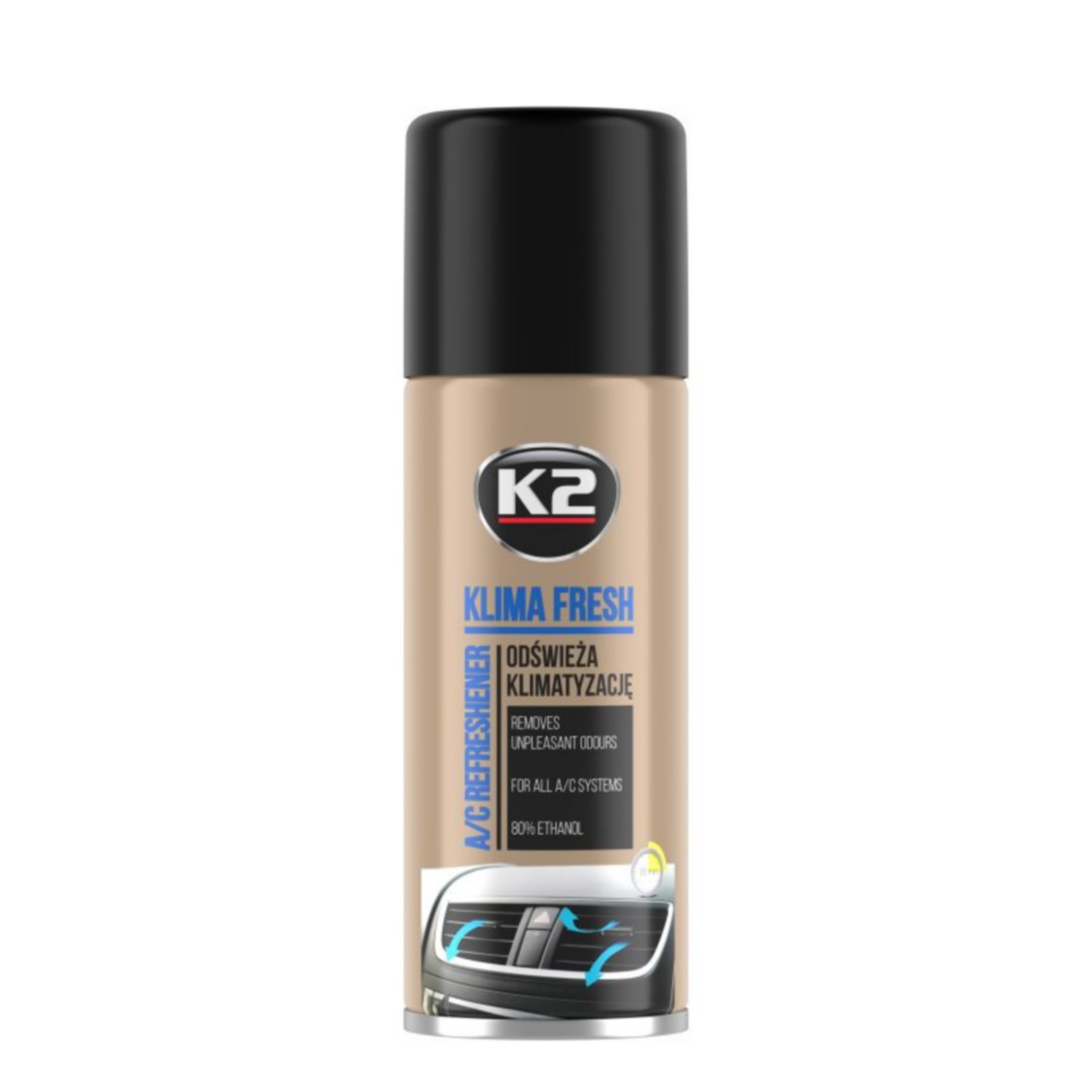 Odświeżacz klimatyzacji K2 KLIMA FRESH to niezwykle skuteczny i łatwy w użyciu środek do odświeżania klimatyzacji. Usuwa nieprzyjemne zapachy, które powstają na skutek zanieczyszczeń i wilgoci w układzie wentylacyjnym. Cały proces nie zabiera więcej niż kilkanaście minut. Nadaje się do każdego typu klimatyzacji. Po użyciu pozostawia świeży zapach.