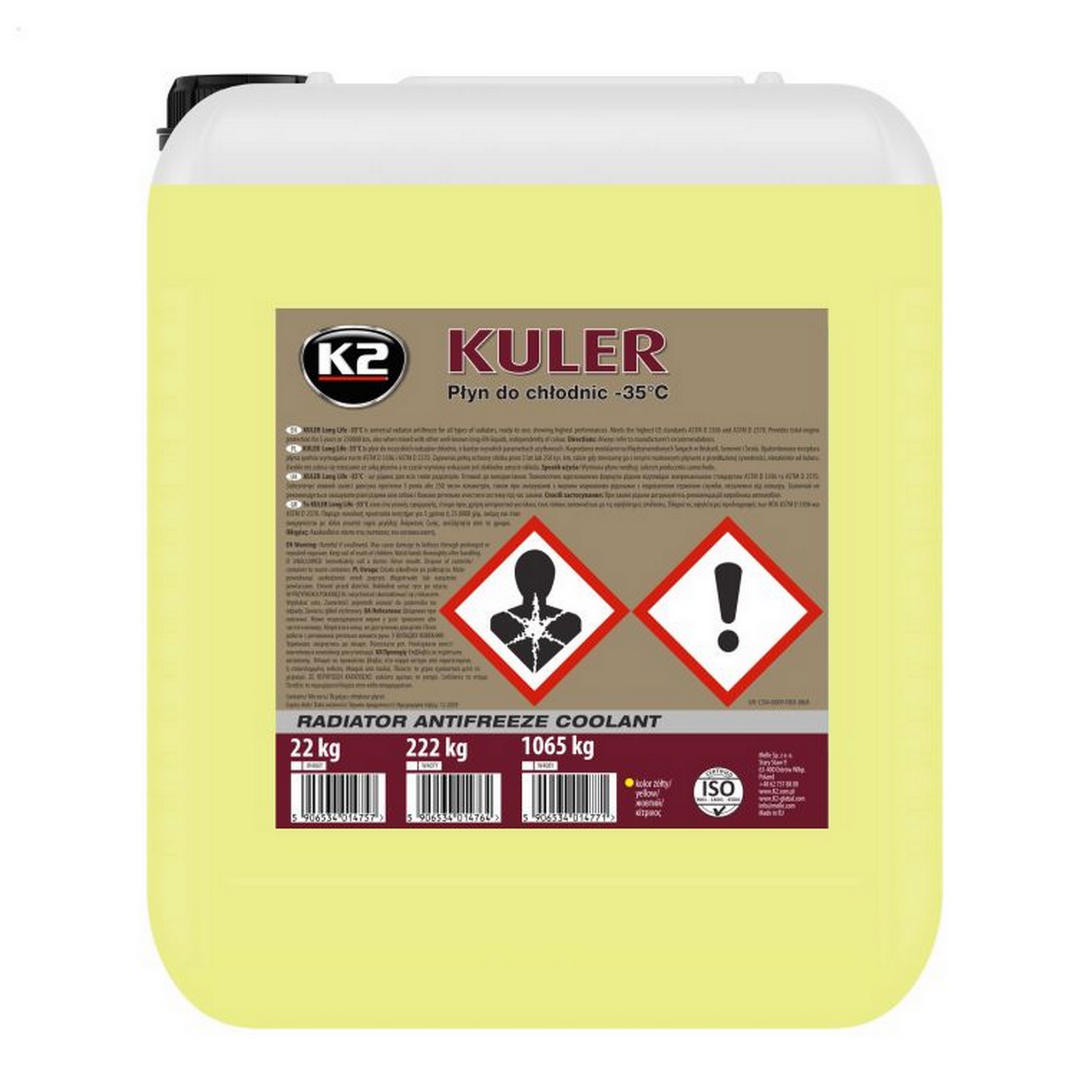 K2 Kuler -35°C to nowoczesny, uniwersalny, gotowy do użycia płyn chłodniczy, który cechuje się bardzo wysokimi parametrami użytkowymi. Ten innowacyjny produkt został nagrodzony złotymi medalami na Międzynarodowych Targach Wynalazków w Brukseli, Genewie i Seulu.