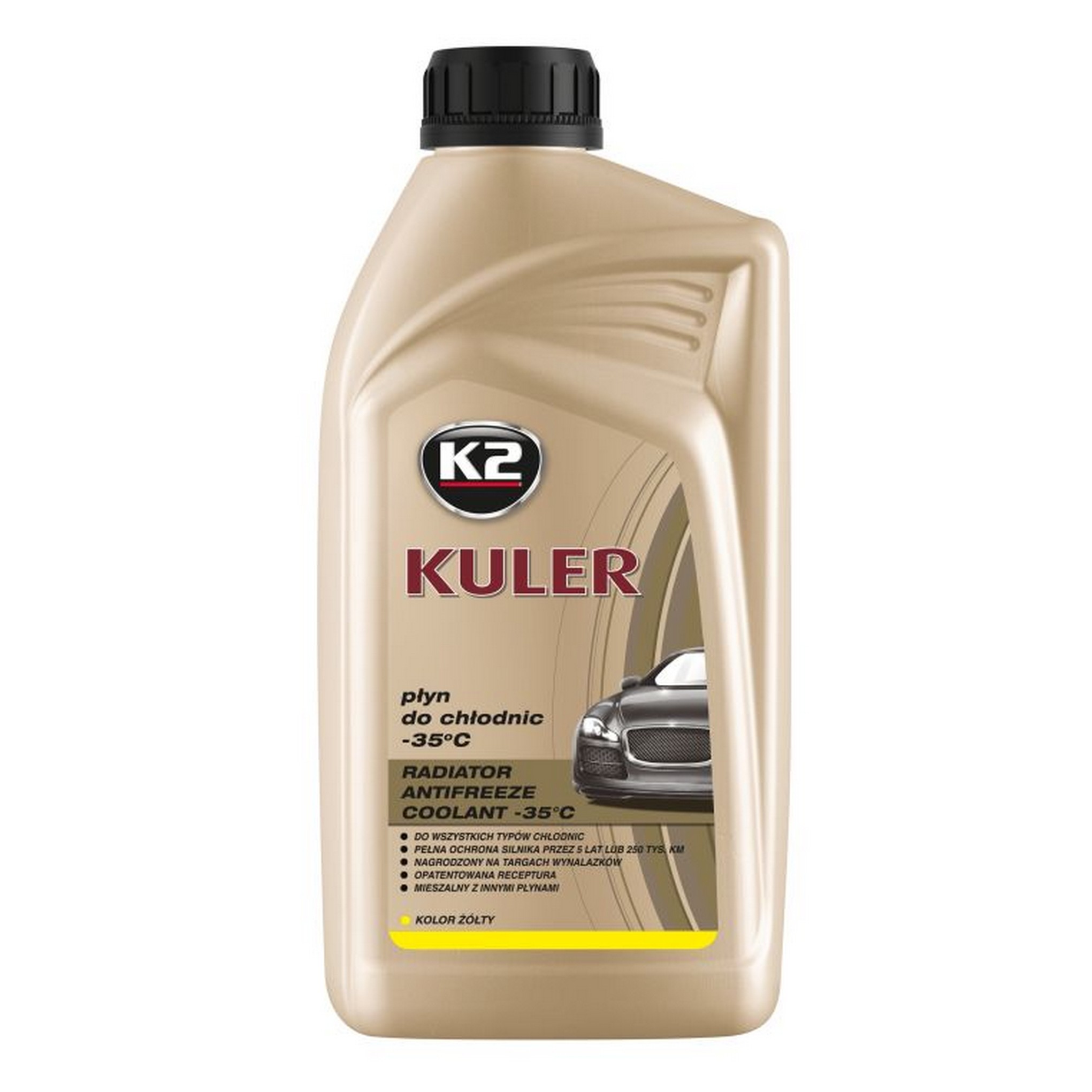 K2 Kuler Long Life -35°C to nowoczesny, uniwersalny, gotowy do użycia płyn chłodniczy, który cechuje się bardzo wysokimi parametrami użytkowymi. Ten innowacyjny produkt został nagrodzony złotymi medalami na Międzynarodowych Targach Wynalazków w Brukseli, Genewie i Seulu.