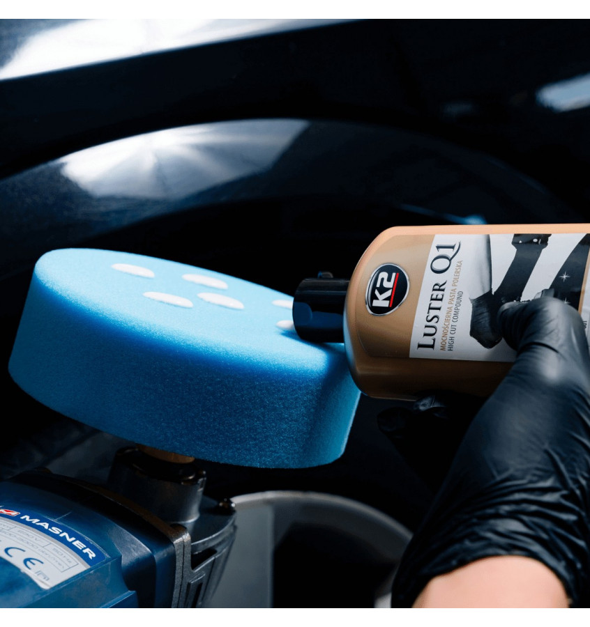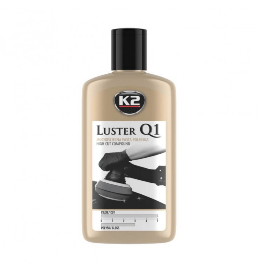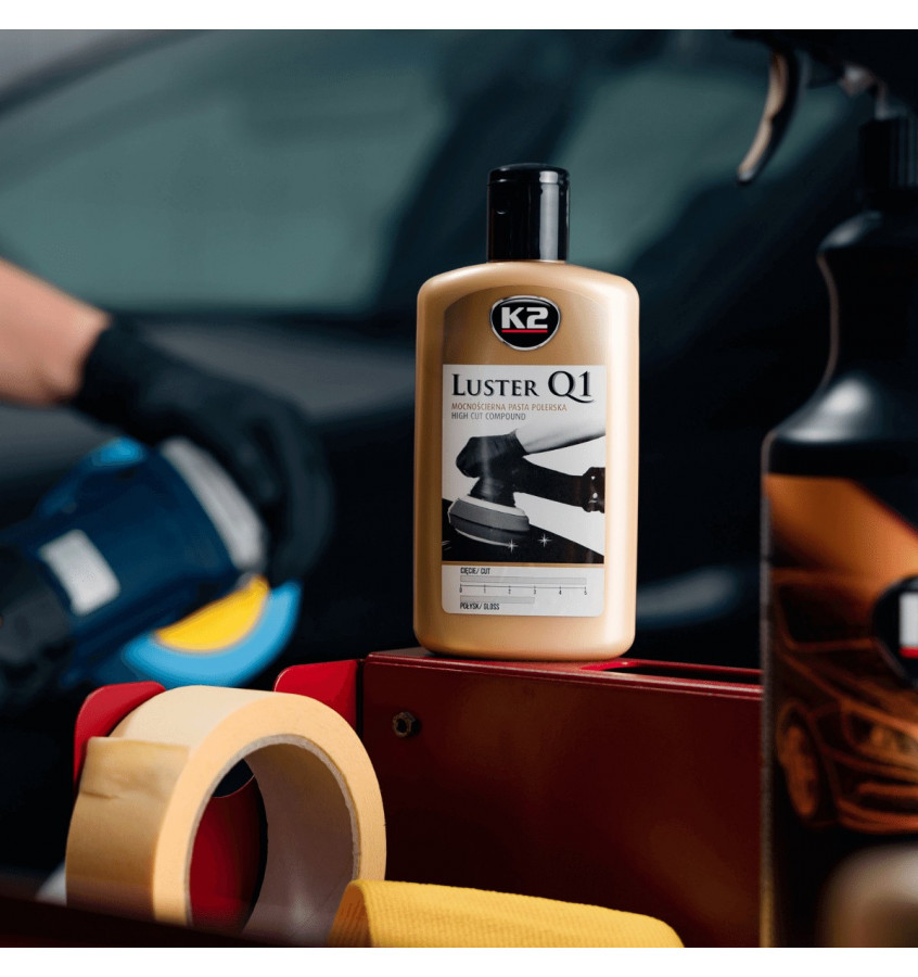 K2 LUSTER Q1 BIAŁY 250 g to pasta do maszynowego polerowania lakieru i wielu innych powierzchni. Zalecana do stosowania w przemyśle motoryzacyjnym i produkcyjnym. Szybko usuwa bardzo duże zarysowania i likwiduje defekty z ekstremalnie zniszczonych lakierów. Wytwarza mało ciepła podczas pracy, przez co nie przegrzewa powierzchni. Zalecana do polerowania: lakierów samochodowych wszelkiego rodzaju, lakierów przemysłowych, łodzi, mebli, żelkotów, wyrobów kompozycyjnych, reflektorów, celulozy, mebli, powierzchni syntetycznych, akryli i wielu innych.