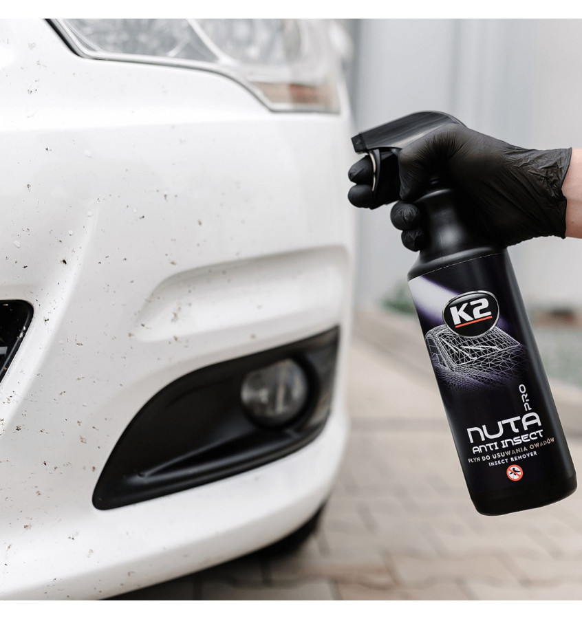 K2 NUTA Anti Insect PRO to profesjonalny, bezpieczny i gotowy do użycia środek do usuwania resztek owadów z powierzchni lakieru samochodowego, zderzaków, lusterek oraz reflektorów. Idealnie sprawdza się jako płyn do usuwania owadów z szyb. Zaprojektowany tak, aby wydać i wygrać wojnę z tysiącami owadzich pozostałości, które szpecą wygląd auta.