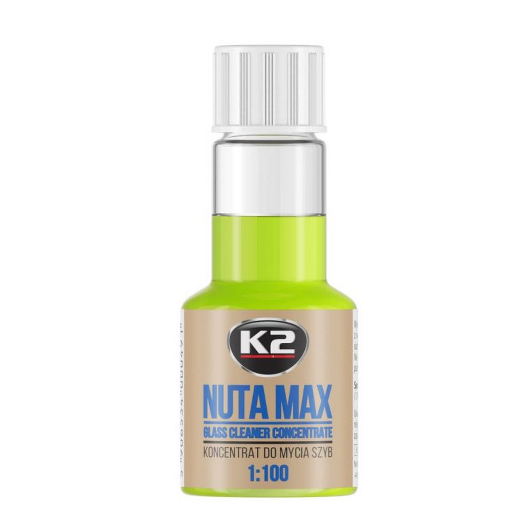 K2 Nuta Max 1:100 to wysoce wydajny koncentrat do mycia szyb samochodowych, okien, szkła i dowolnych szklanych powierzchni.