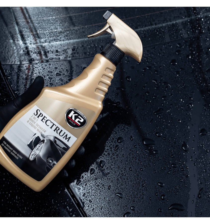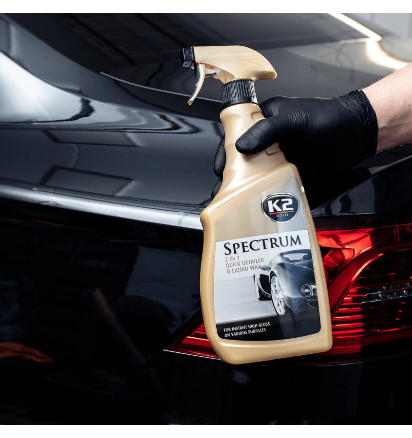 K2 SPECTRUM to unikalny, syntetyczny wosk w płynie (Quick Detailer), którego celem jest szybkie nabłyszczanie lakieru auta. Doskonale sprawdza się w sytuacjach kiedy w krótkim czasie chcemy nadać połysk i odświeżyć wygląd całego samochodu. Zapewnia natychmiastowy i spektakularny efekt.