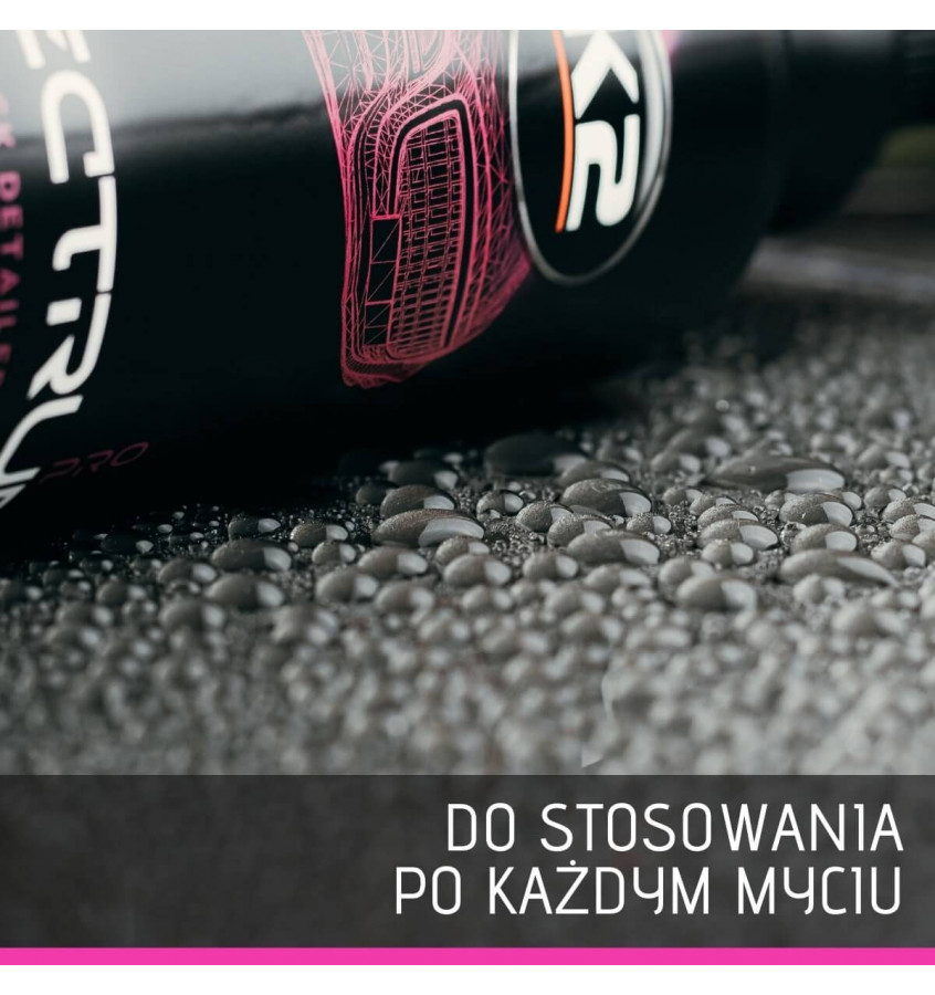 K2 SPECTRUM PRO to więcej niż tylko głębia koloru i lustrzany połysk. W kontakcie z pielęgnowaną powierzchnią tworzy na niej powłokę hydrofobową, która niczym pole siłowe chroni lakier przed szkodliwym wpływem warunków atmosferycznych.