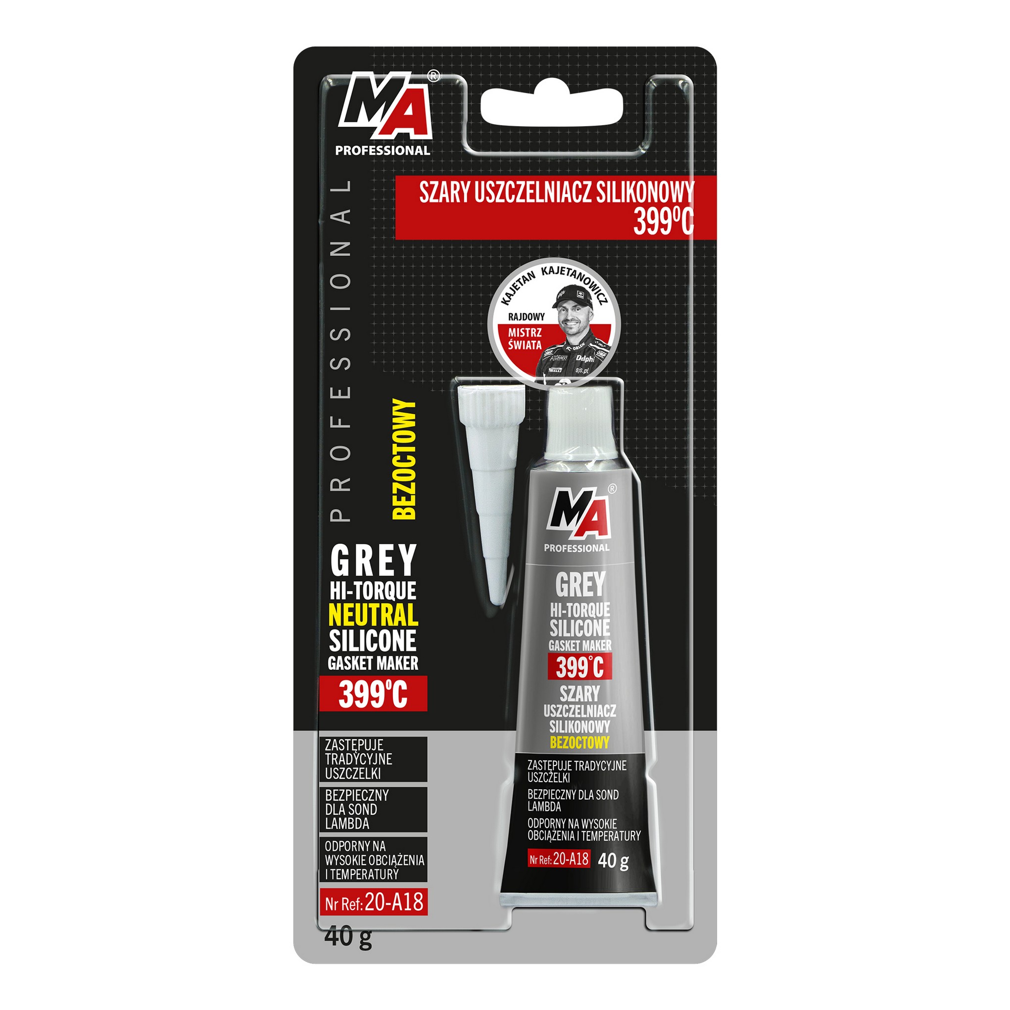 Neutralny uszczelniacz (bezoctowy). Zastępuje tradycyjne uszczelki. Bezpieczny dla sond Lambda. Odporny na wysokie obciążenia oraz temperatury do +399°C.