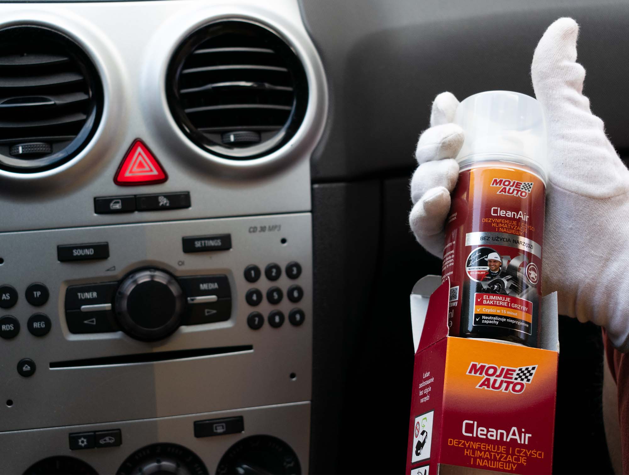 Skuteczny preparat odświeżający i oczyszczający nawiewy i system wentylacji w pojazdach. Usuwa nieprzyjemne zapachy spowodowane zaleganiem zanieczyszczeń i wilgocią zapewniając świeży zapach we wnętrzu samochodu. O zapachu New Car. Posiada Pozwolenie Urzędu Rejestracji Wyrobów Medycznych Produktów Leczniczych i Produktów Biobójczych 6619/16.