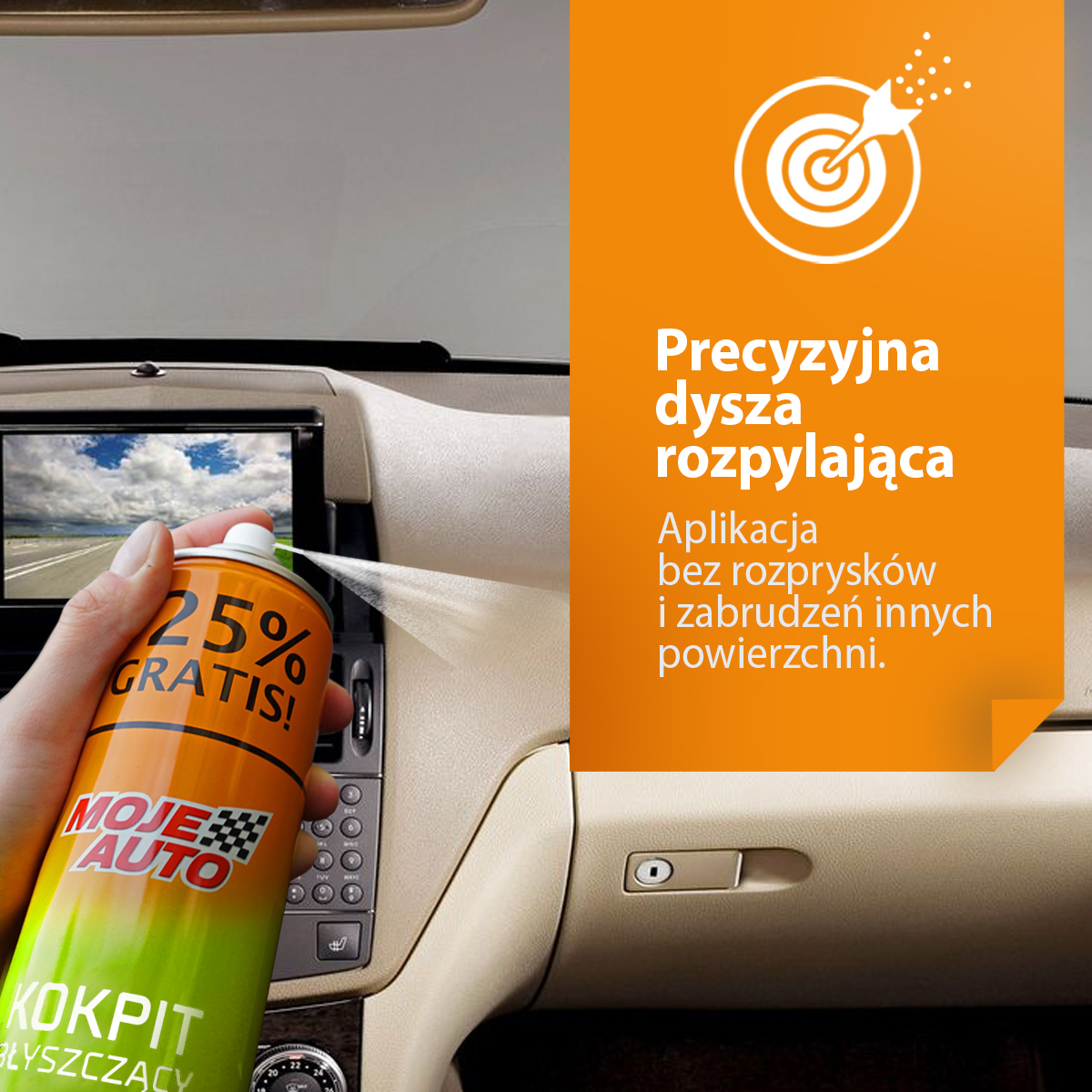 Preparat do czyszczenia kokpitu. Czyści i konserwuje wszelkie elementy plastikowe wewnątrz samochodu. Działa antystatycznie. Zmniejszają możliwość ponownego osadzania się kurzu. Pozostawia czyszczone powierzchnie błyszczące, nadając im przyjemny zapach świeżego jabłka. Opóźnia proces starzenia się plastiku.