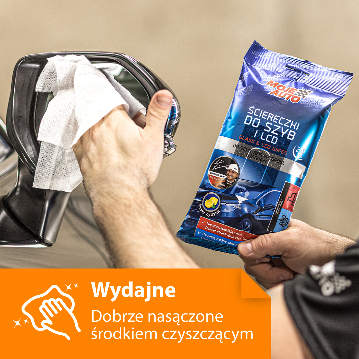 Nie pozostawiają smug. Łatwe w użyciu. Usuwają trudne zabrudzenia. Do szyb, reflektorów i lusterek. Opakowanie gwarantujące trwałość.