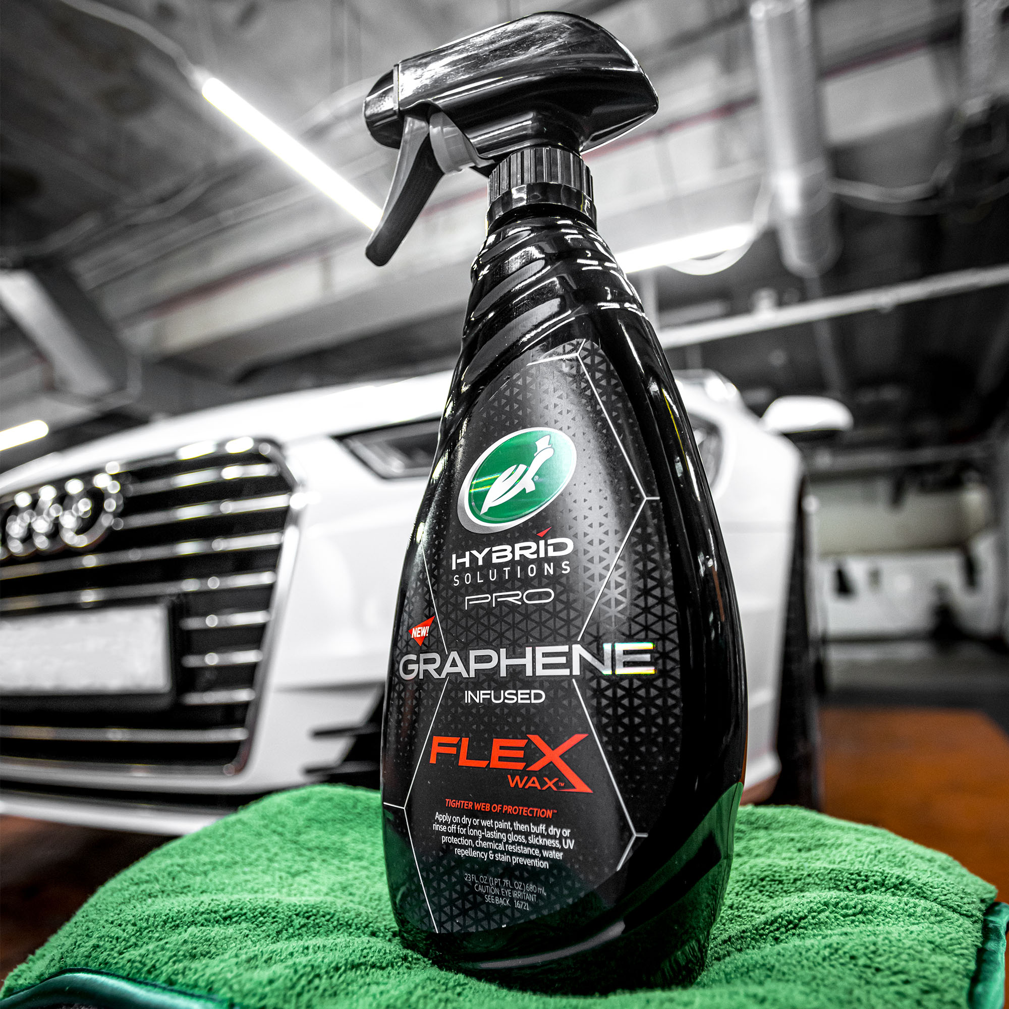 Wszechstronny wosk w sprayu Hybrid Solutions Pro Graphene FLEX WAX, który zapewnia bezkompromisowo trwałą powłokę.Zawiera GRAFEN, który tworzy gęstą siatkę ochronną dla zapewnienia niesamowitego połysku, gładkości, hydrofobowości,odporności chemicznej oraz zwiększonej ochrony przed promieniowaniem UV. Może być nakładany na 3 różne sposoby – na suchy lub mokry lakier i rozprowadzony za pomocą wody. Zapewnia niesamowitą gładkość.
