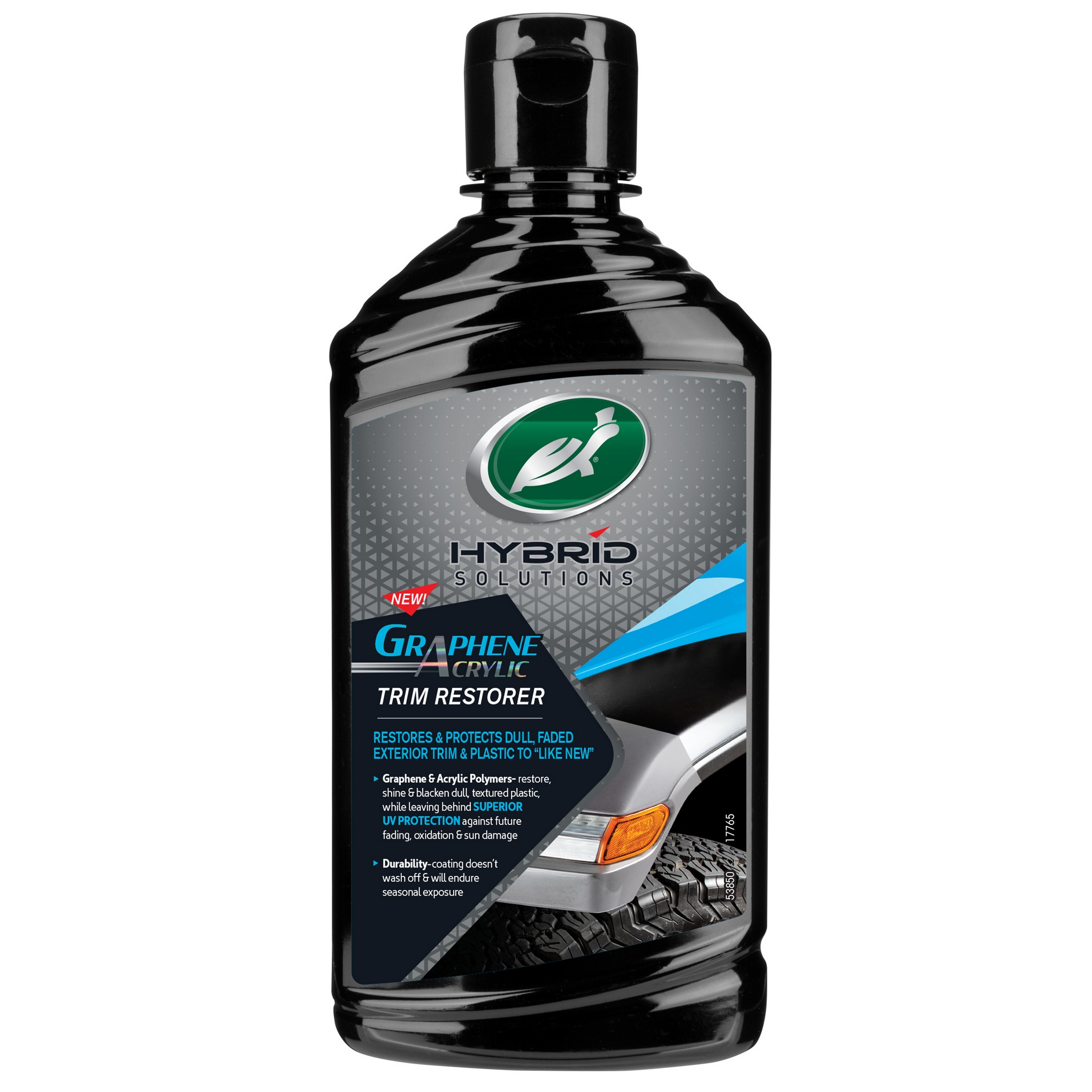 Hybrid Solutions Graphene Acrylic Trim Restorer to zaawansowana formuła, która przywraca i chroni matowe, wyblakłe zewnętrzne elementy wykończeniowe i plastiki. Kombinacja Graphene i polimerów akrylowych nabłyszcza i przyciemnia matowe tekstury plastiku, zapewniając doskonałą ochronę przed promieniowaniem UV. Ta trwała powłoka nie zmywa się i wytrzymuje przez cały sezon. W ciągu kilku minut od nałożenia jest sucha w dotyku. Graphene Acrylic Trim Restorer działa równie dobrze przy ochronie nowych elementów wykończeniowych i plastiku przed blaknięciem spowodowanym czynnikami zewnętrznymi, myciem samochodu i solą drogową.